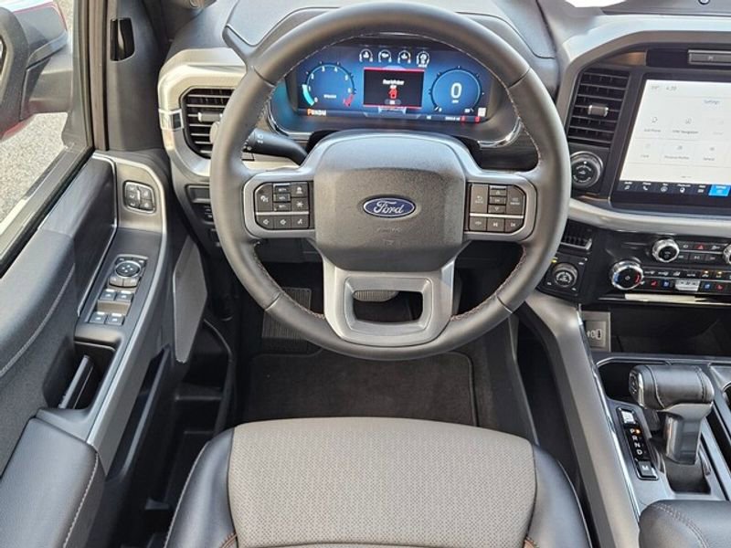 See what's behind you with the back up camera on this unit. You'll never again be lost in a crowded city or a country region with the navigation system on this model. This unit offers Apple CarPlay for seamless connectivity. The Ford F-150 has automated speed control that adjusts to maintain a safe following distance, enhancing highway driving convenience. This 1/2 ton pickup offers Android Auto for seamless smartphone integration. This Ford F-150 features a hands-free Bluetooth phone system. The leather seats in this vehicle are a must for buyers looking for comfort, durability, and style. The vehicle has a clean AutoCheck report, ensuring its impeccable vehicle history. This 1/2 ton pickup has only one previous owner, verified by AutoCheck. It's Cross-Traffic Alert: Safeguarding you from unexpected traffic when reversing. This vehicle is pure luxury with a heated steering wheel. The Ford F-150 gleams with a flashy red exterior. This 1/2 ton pickup has a V6, 3.5L high output engine.