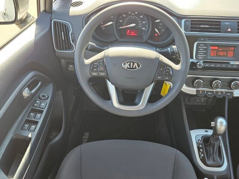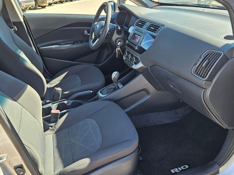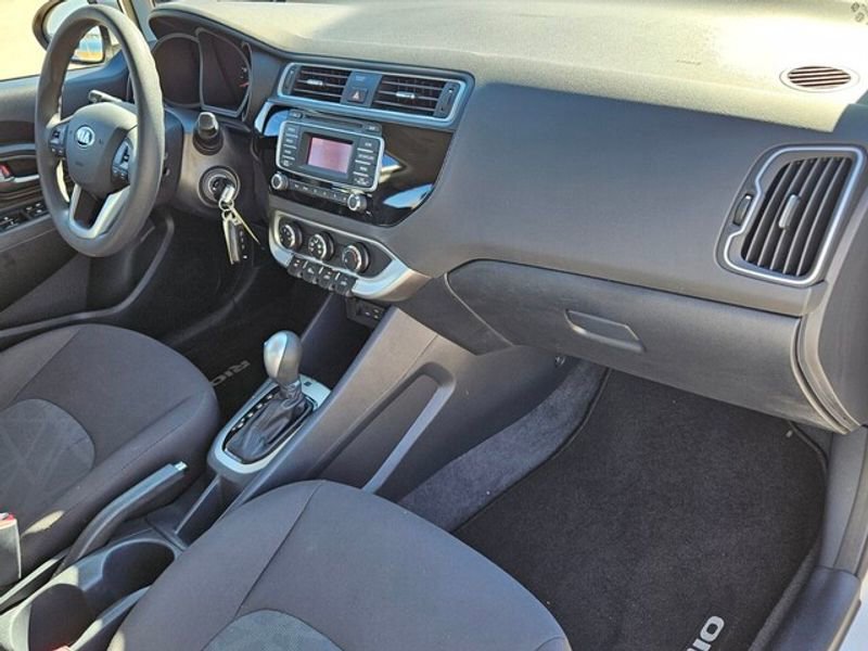 This 2016 Kia Rio 's AutoCheck: 1 owner, assurance of single-owner history for peace of mind. This vehicle has a 4 Cyl, 1.6L high output engine. This small car gleams with an elegant silver clear coated finish. Front wheel drive on this model gives you better traction and better fuel economy. Set the temperature exactly where you are most comfortable in this small car. The fan speed and temperature will automatically adjust to maintain your preferred zone climate. Anti-lock brakes will help you stop in an emergency. This unit has an automatic transmission. The Electronic Stability Control will keep you on your intended path. Enjoy the tried and true gasoline engine in this 2016 Kia Rio . This small car is easy to park.