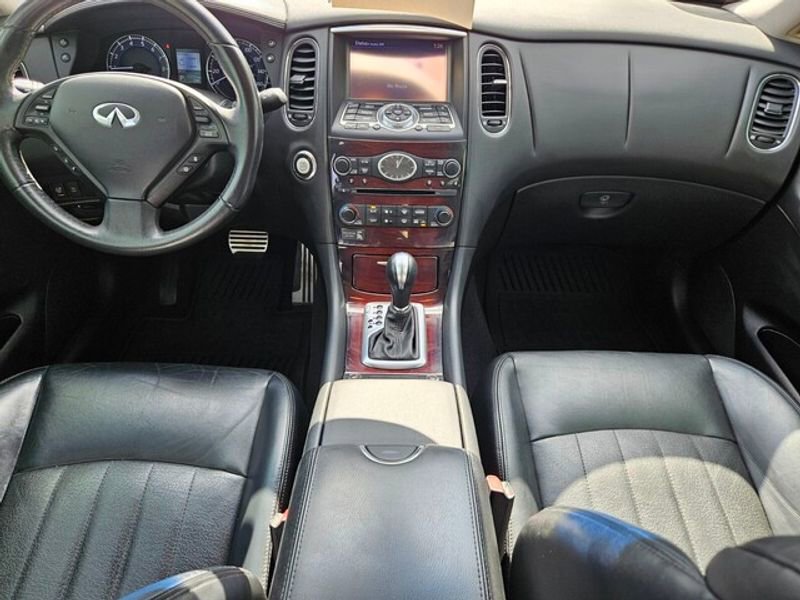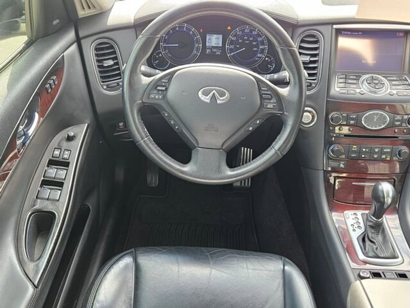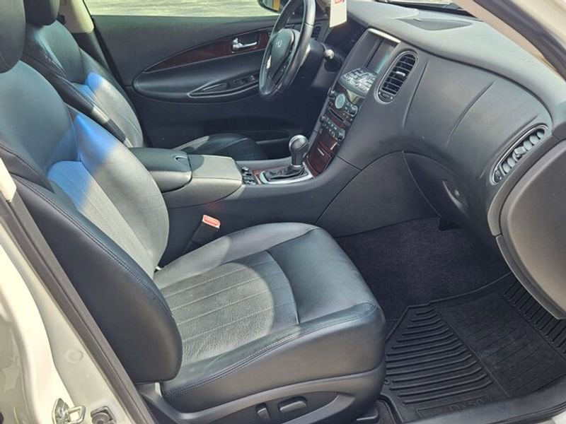 Premium Package: Bose 11-Speaker Premium Audio System; Maple Interior Accents; Dual Occupant Memory System For Driver's Seat; Advanced Climate Control System (ACCS); Aluminum Roof Rails; Outside Mirrors with Reverse Tilt-Down Feature; Power Tilt and Telescopic Steering Column; Auto-Dimming Inside Mirror; AM/FM/CD/DVD Radio with MP3 Playback Capability. Premium Plus Package: Streaming Audio Via Bluetooth Wireless Technology; Around View Monitor (AVM); INFINITI Navigation System. Technology Package: Intelligent Brake Assist (iba); Blind Spot Warning (BSW); Intelligent Cruise Control; Lane Departure Warning (LDW); Aluminum Pedals. Deluxe Touring Package: Coat Hanger on Driver's Seat Head Restraint; 19" X 8.5" Split 5-Spoke Aluminum-Alloy Wheels; Premium Stitching on Meter Hood; High Intensity Discharge (HID) Xenon Headlights; P245/45R19 Performance AS Tires; 2-Way Power Driver's Seat Lumbar Support; 8-Way Power Front-Passenger's Seat; Power Up-Folding 2nd Row Seats. Special Paint - Majestic White. Illuminated Kick Plates. Stainless Steel Look Rear Bumper Protector. Tonneau Cover. Splash Guards (set of 4). Cargo Area Protector and First Aid Kit. **Equipment listed is based on original vehicle build and subject to change. Please confirm the accuracy of the included equipment by calling the dealer prior to purchase.**