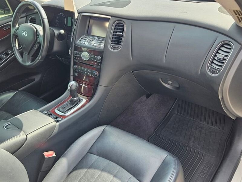This mid-size suv's Forward Collision Warning feature alerts drivers to potential front-end collisions. It's Lane Departure Warning keeps you safe by alerting you when you drift from your lane. The vehicle has auto-adjust speed for safe following. The state of the art park assist system will guide you easily into any spot. The leather seats in this model are a must for buyers looking for comfort, durability, and style. Engulf yourself with the crystal clear sound of a BOSE sound system in this 2017 INFINITI QX50 . This model offers Automatic Climate Control for personalized comfort. This mid-size suv features a hands-free Bluetooth phone system. The installed navigation system will keep you on the right path. This INFINITI QX50 will allow to see the road and so much more with the HID headlights. See what's behind you with the back up camera on it. Night driving with HID Xenon headlamps is a breeze in the vehicle.