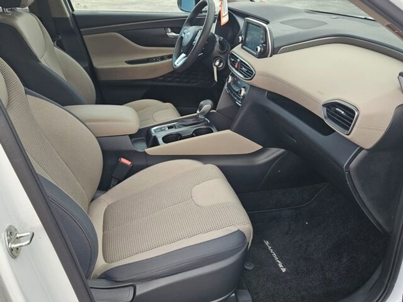 This unit features a hands-free Bluetooth phone system. This model has a clean AutoCheck report, ensuring its impeccable vehicle history. This mid-size suv's AutoCheck: 1 owner, assurance of single-owner history for peace of mind. This 2019 Hyundai Santa Fe comes equipped with Android Auto for seamless smartphone integration on the road. See what's behind you with the back up camera on this model. This 2019 Hyundai Santa Fe stays safely in its lane with Lane Keep Assist. Apple CarPlay: Seamless smartphone integration for this Hyundai Santa Fe - stay connected and entertained on the go! Set the temperature exactly where you are most comfortable in this model. The fan speed and temperature will automatically adjust to maintain your preferred zone climate. This Hyundai Santa Fe has a 4 Cyl, 2.4L high output engine. The vehicle shines with clean polished lines coated with an elegant white finish. With the keyless entry system on this Hyundai Santa Fe you can pop the trunk without dropping your bags from the store.