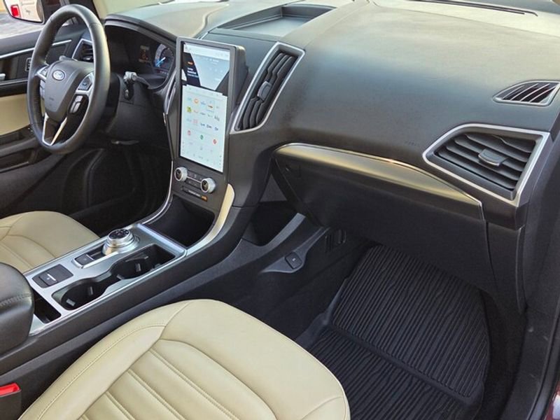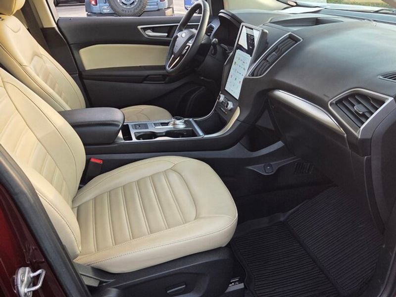 This unit offers Android Auto for seamless smartphone integration. Bluetooth technology is built into the vehicle, keeping your hands on the steering wheel and your focus on the road. Apple CarPlay: Seamless smartphone integration for this 2022 Ford Edge - stay connected and entertained on the go! This vehicle has a clean AutoCheck report, ensuring its impeccable vehicle history. This unit has only one previous owner, verified by AutoCheck. The state of the art park assist system will guide you easily into any spot. This Ford Edge keeps you comfortable with Auto Climate. The leather seats in this vehicle are a must for buyers looking for comfort, durability, and style. Never get into a cold vehicle again with the remote start feature on this unit. Protect this Ford Edge from unwanted accidents with a cutting edge backup camera system. This model's Cross-Traffic Alert: Safeguarding you from unexpected traffic when reversing.